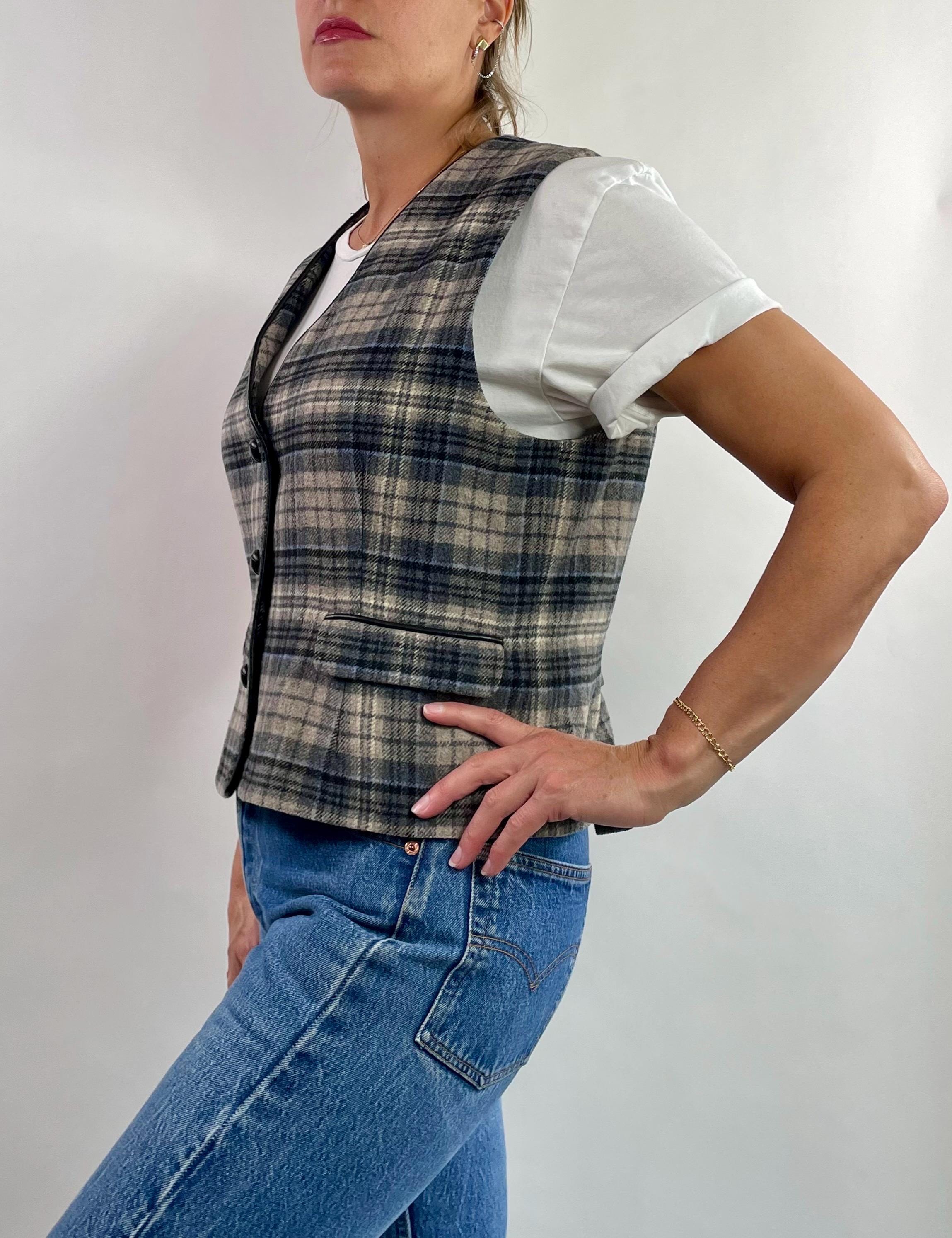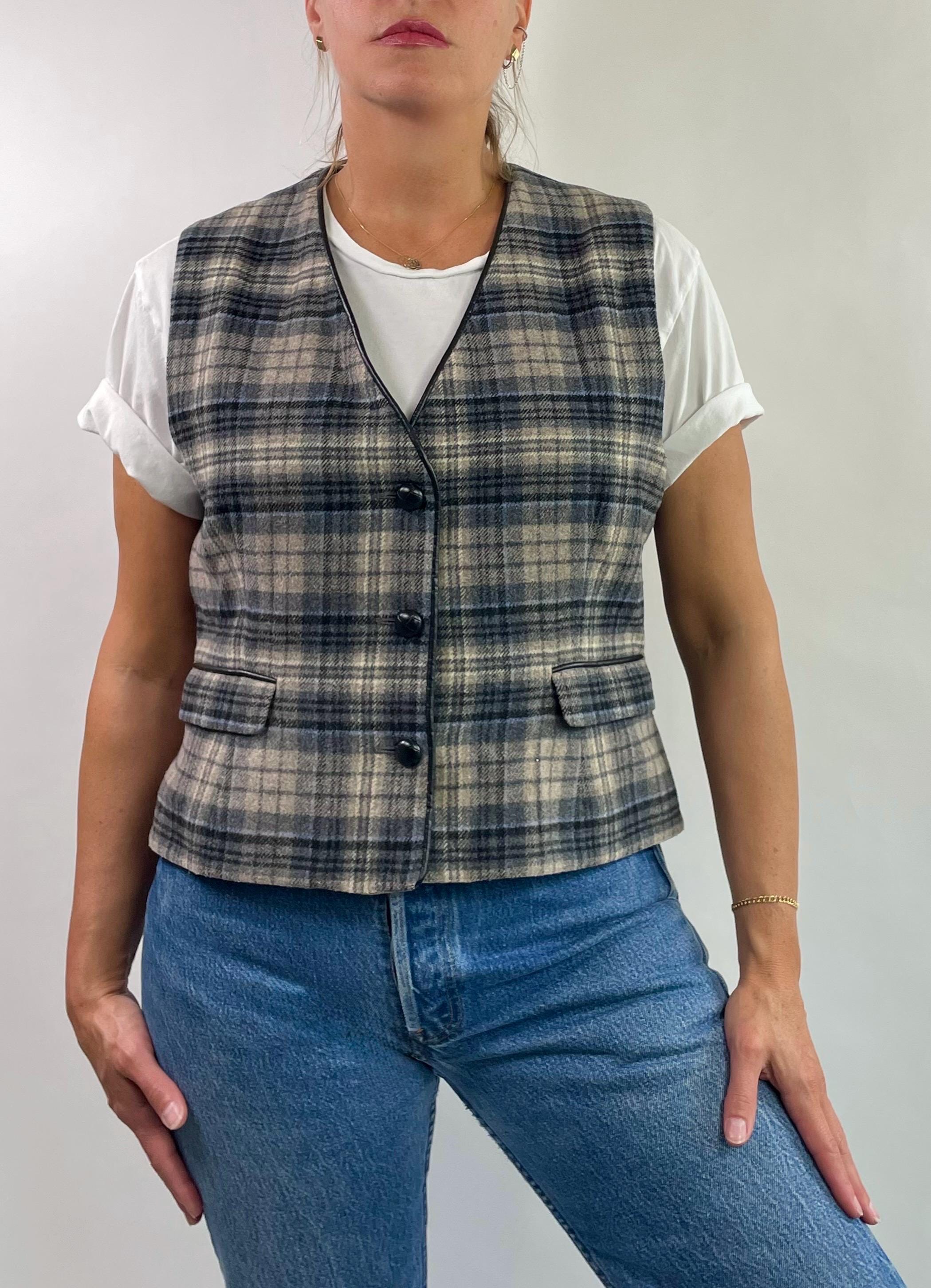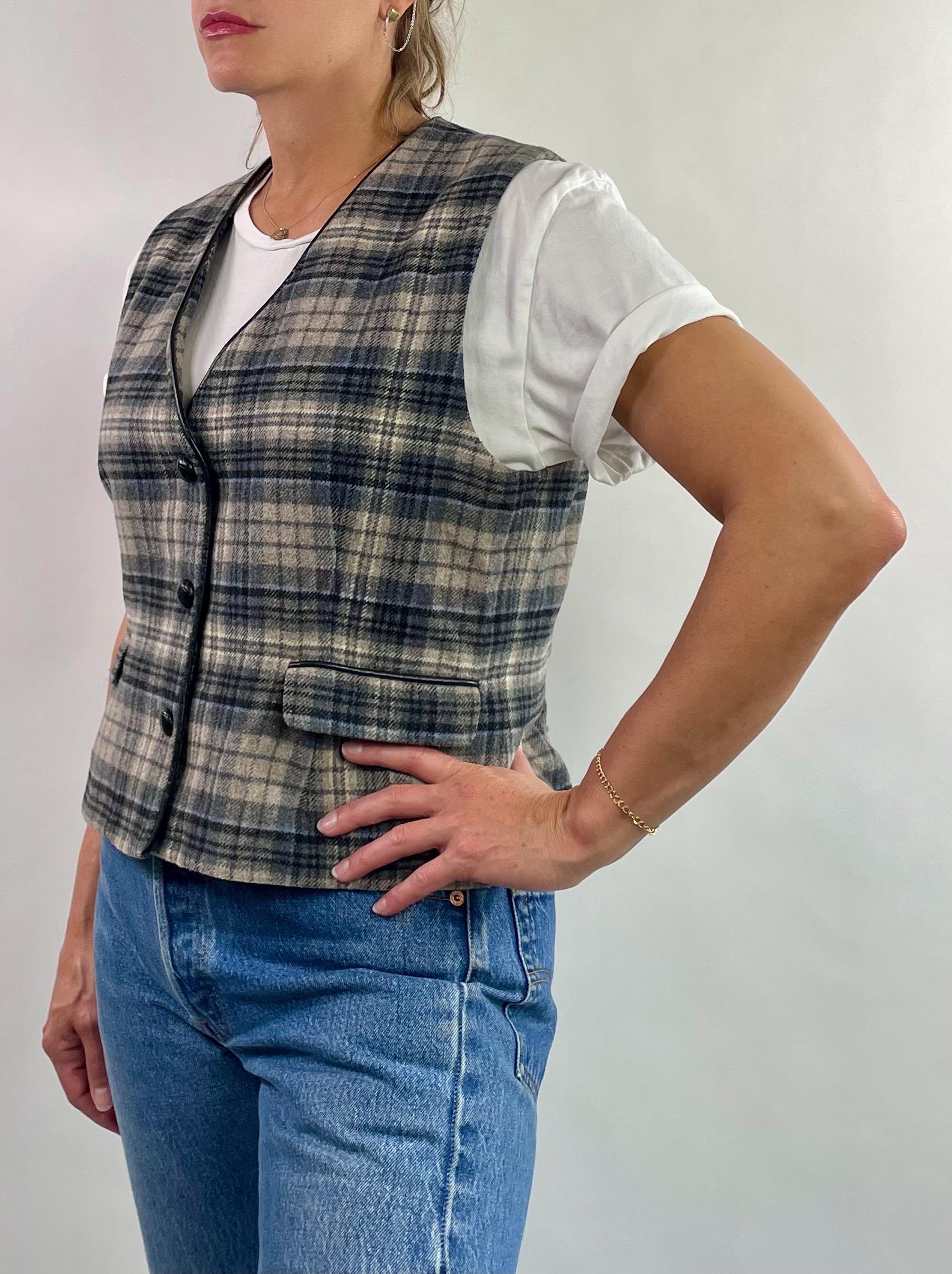 Vintage 90’s 00’s Y2K plaid wool blend vest top