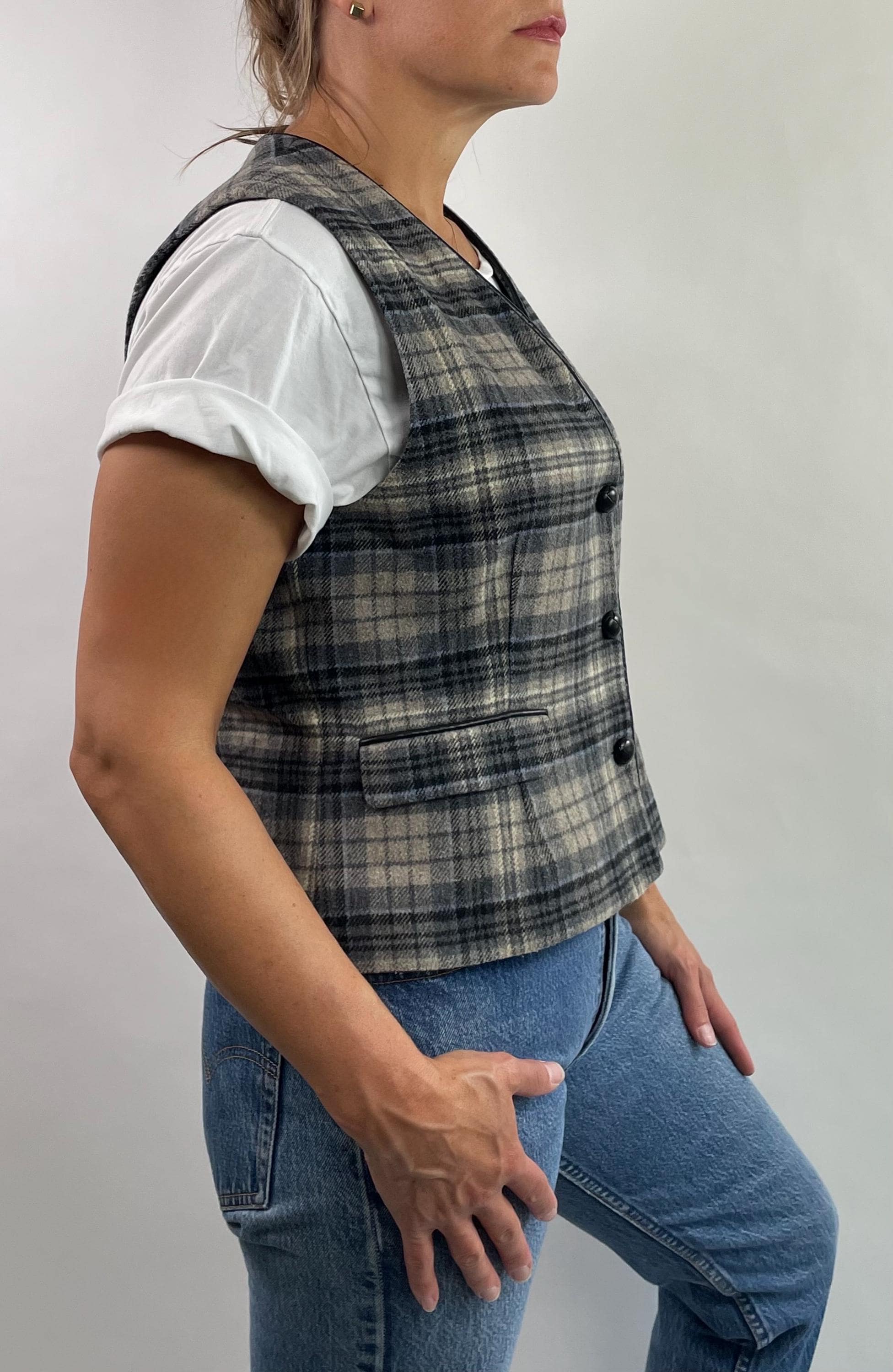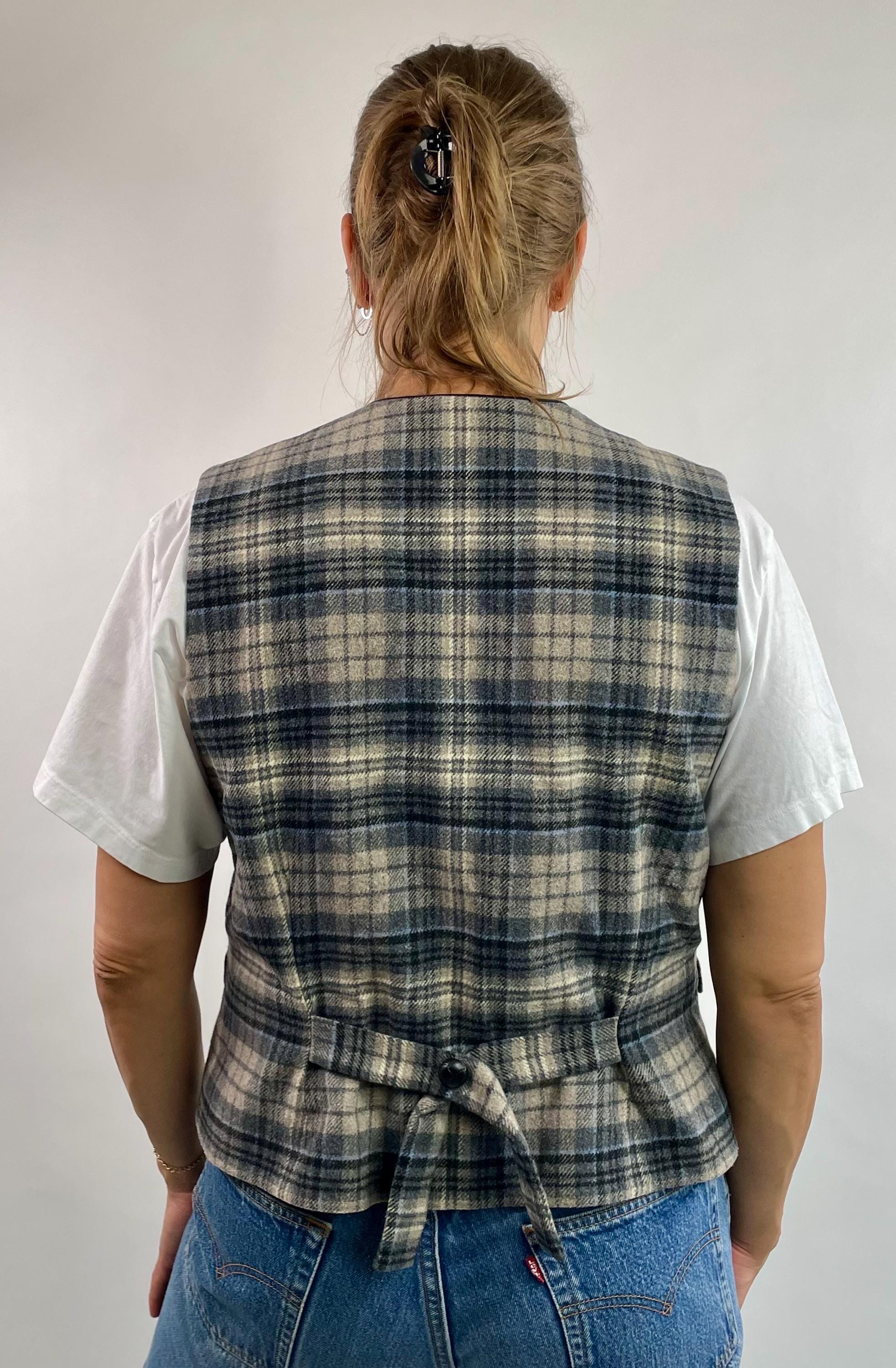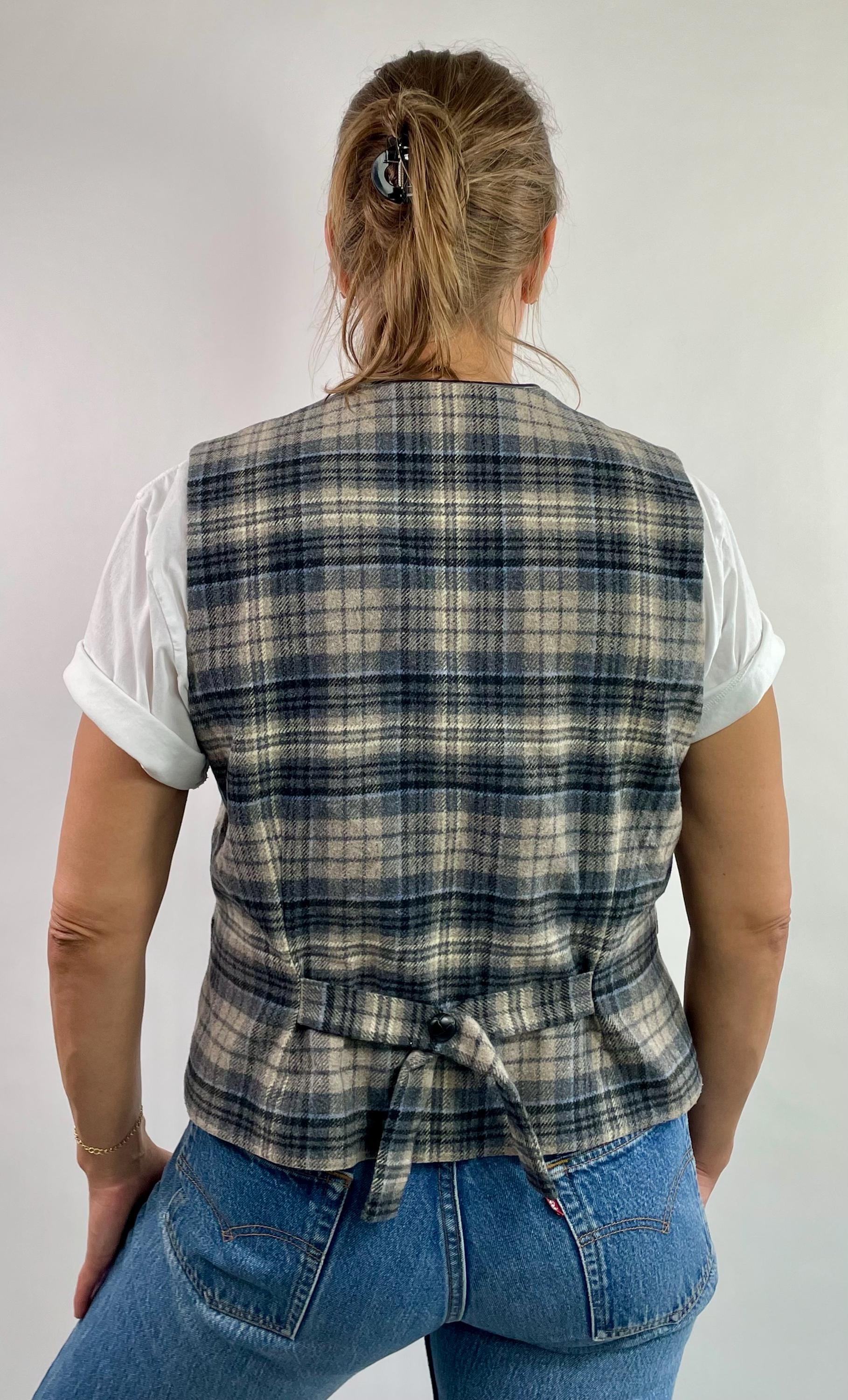 Vintage 90’s 00’s Y2K plaid wool blend vest top